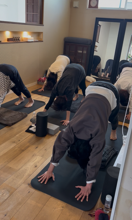 AIKAYOGA STUDIOはヨガマット、ヨガブロック、筋膜リリース用のフォームローラー完備の手ぶらで気軽に通える、定員8〜9名のアットホームなヨガ教室です。