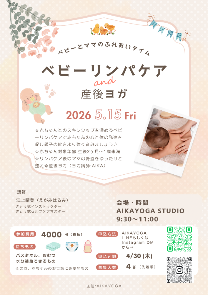 【ベビーリンパケア&産後ヨガ】開催します!