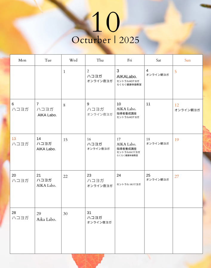 ・朝ヨガ→毎週(土)or(日)10:00〜11:15
