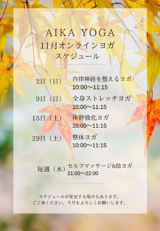 ・朝ヨガ→毎週(土)or(日)10:00〜11:15
